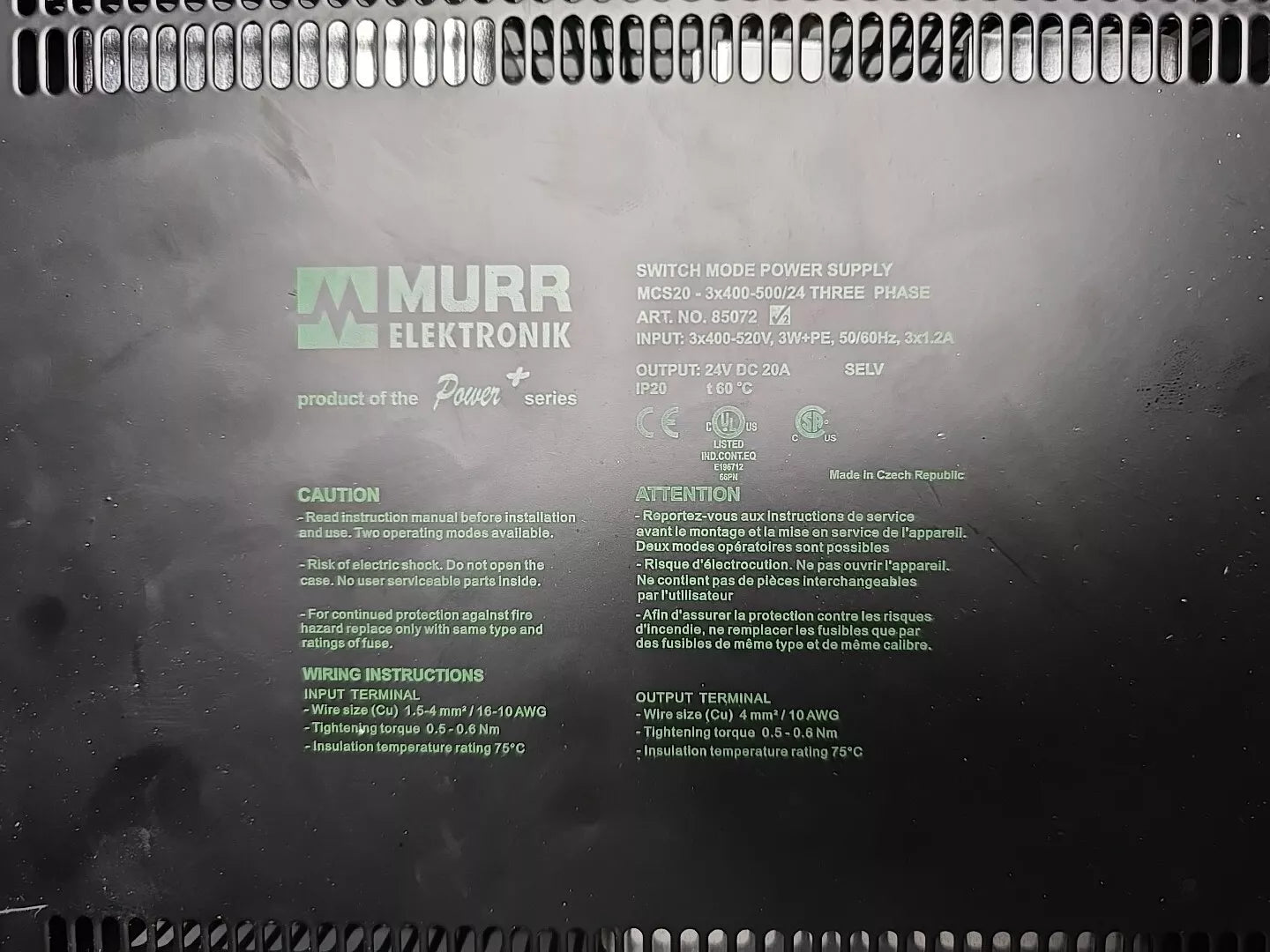 Murr Trafo Schaltnetzteil MCS20 - 3x400-500/24 Drei PHASEN 85072